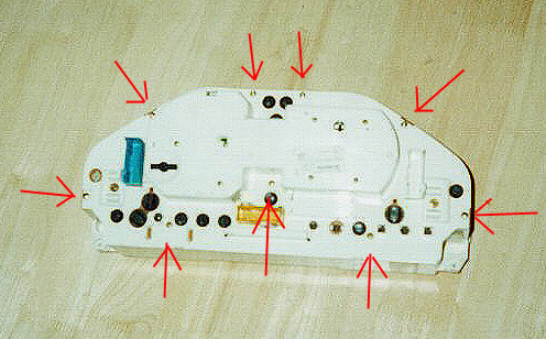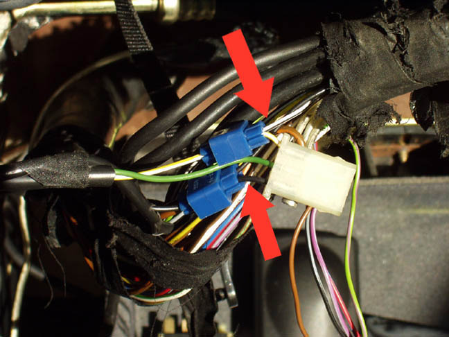 - yellow/white wire from instrument cluster harness to white/black wire on engiine harness (runs to pin #32).