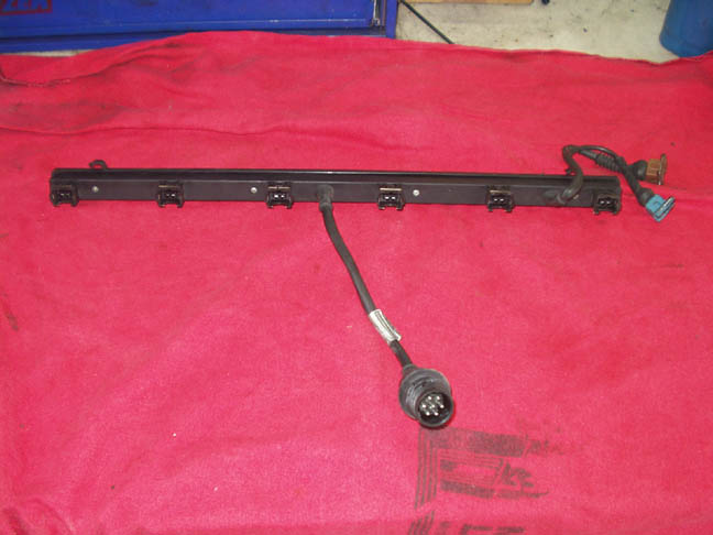 Later model 325i’s use a secondary harness just for the fuel injectors, unlike the 325e’s wiring harness which connects directly to the injectors. Because of this you should use the 325i fuel rail because the 325e’s fuel rail has an outlet for a return line right next to the #6 injector. If you do use the 325e rail, you’ll have to figure out a way to wedge the 325i’s harness rail underneath it without breaking anything.