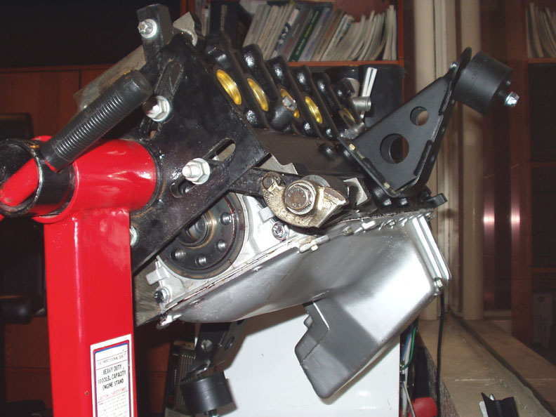 Installing the engine was surprisingly the opposite of removal. The engine went in without a problem. Once it was in we tightened the motor mounts and wedged a wooden block behind the cylinder head and another in between the timing cover and front frame to prevent it from literally falling through the cracks.